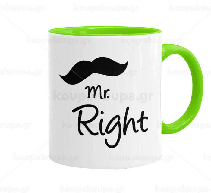 Mr right Mustache, Mug colored light green, ceramic, 330ml