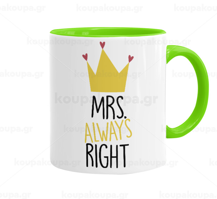 Mrs "Always" right, Mug colored light green, ceramic, 330ml