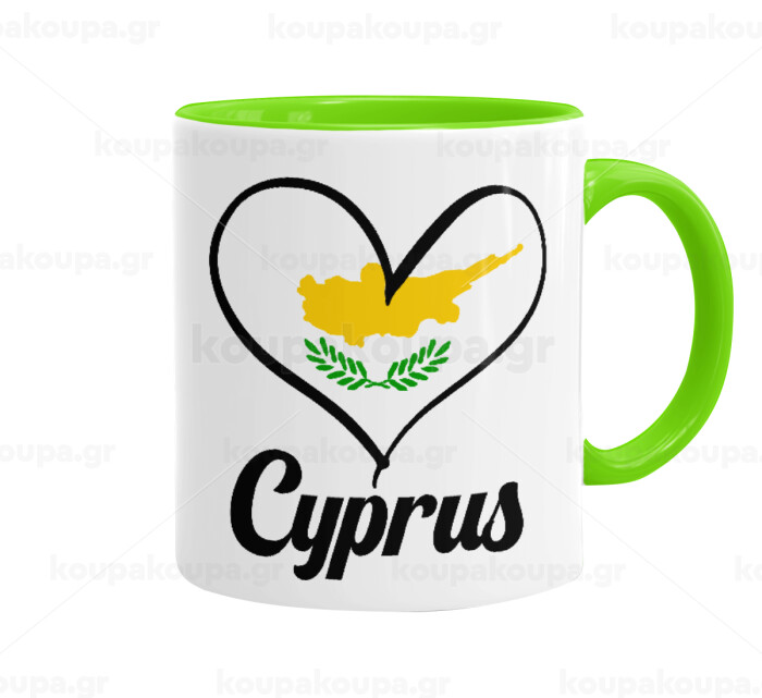 Cyprus flag, Mug colored light green, ceramic, 330ml