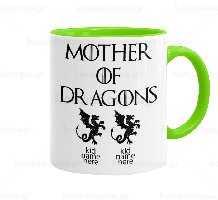 GOT, Mother of Dragons (με ονόματα παιδικά), Mug colored light green, ceramic, 330ml