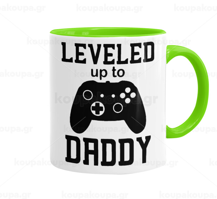 Leveled to Daddy, Mug colored light green, ceramic, 330ml