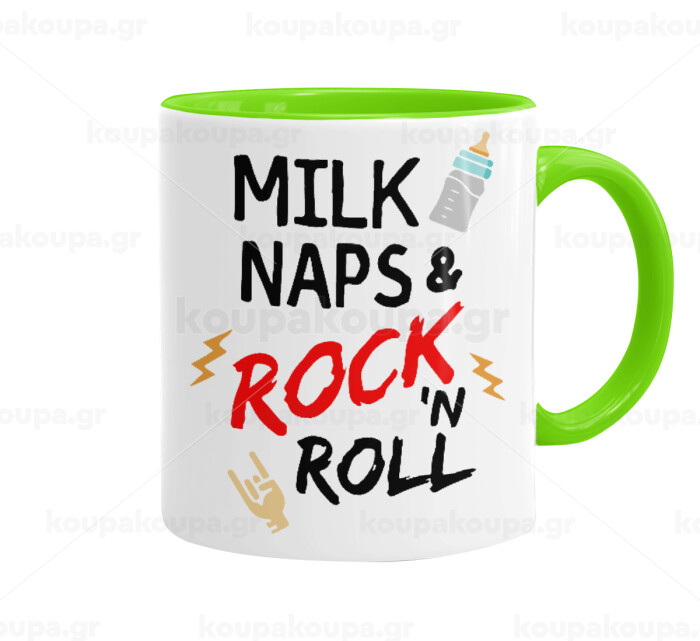 milk naps and Rock n' Roll, Mug colored light green, ceramic, 330ml