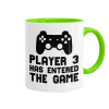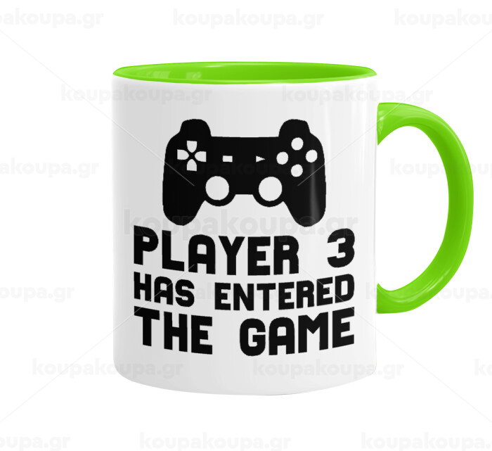 Player 3 has entered the Game, Mug colored light green, ceramic, 330ml
