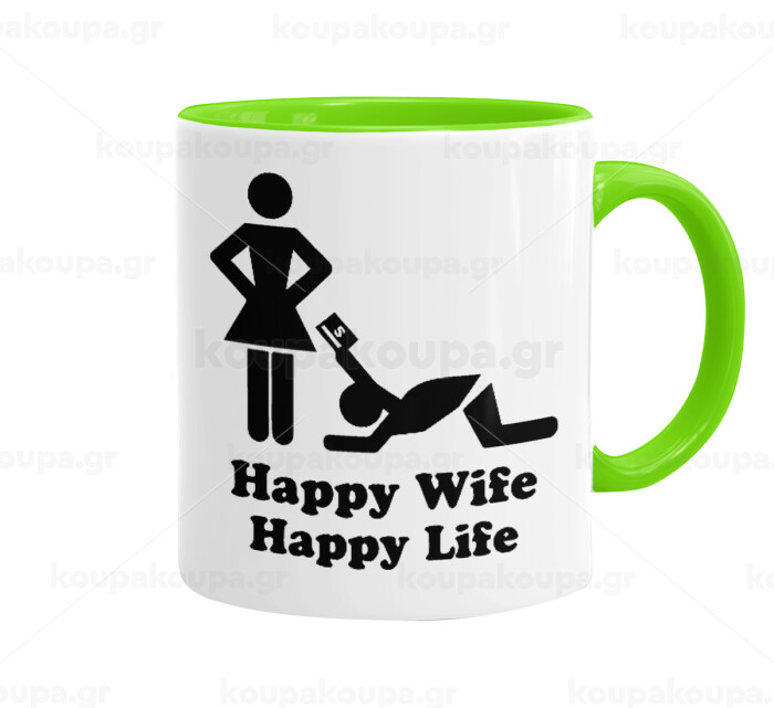 Happy Wife, Happy Life, Mug colored light green, ceramic, 330ml