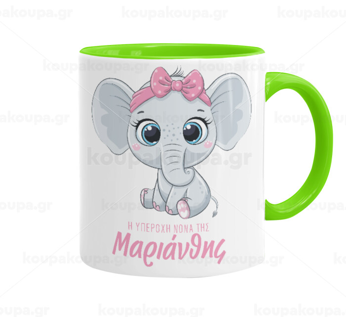 Η νονά μου, ελεφαντάκι ροζ, Mug colored light green, ceramic, 330ml
