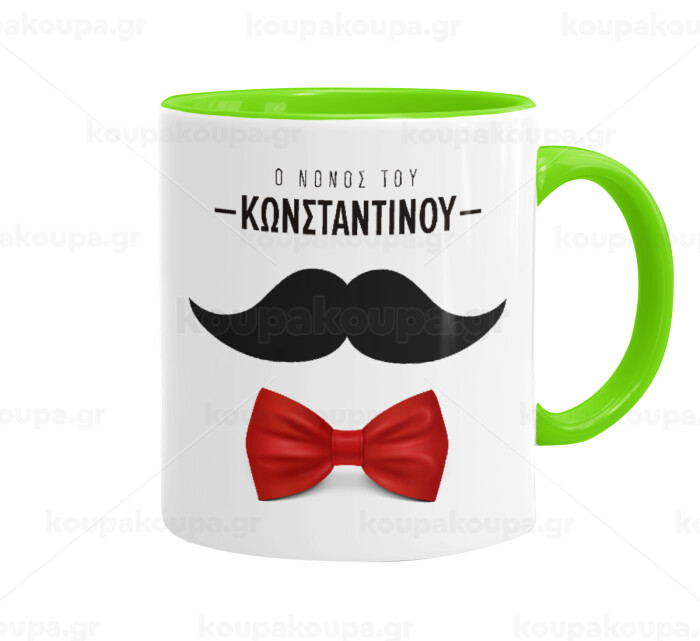 Ο νονός μου, μουστάκι με παπιγιόν, Mug colored light green, ceramic, 330ml