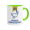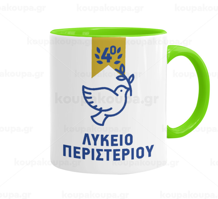 Έμβλημα Σχολικό μπλε/χρυσό περιστέρι, Mug colored light green, ceramic, 330ml
