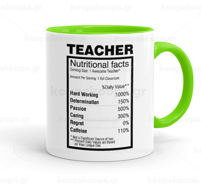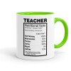 teacher nutritional facts, Mug colored light green, ceramic, 330ml