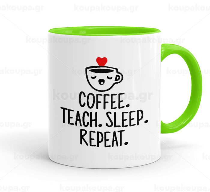 Coffee Teach Sleep Repeat, Mug colored light green, ceramic, 330ml