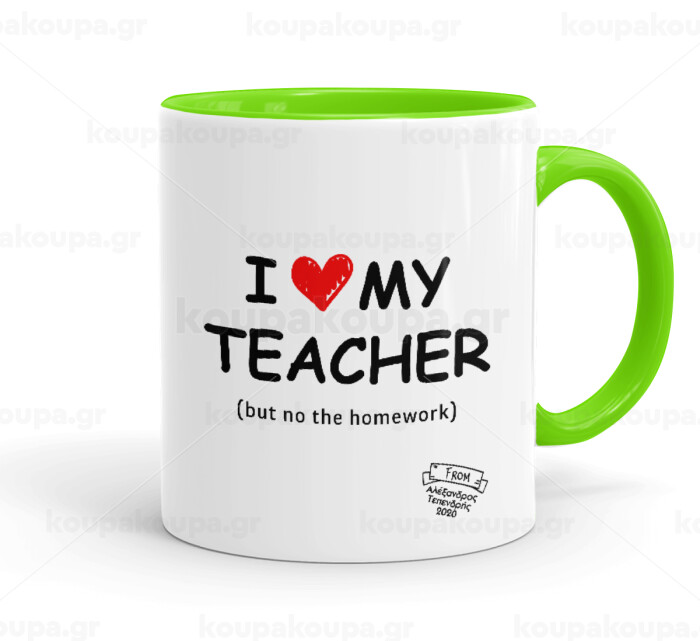 i love my teacher but no the homework, Mug colored light green, ceramic, 330ml