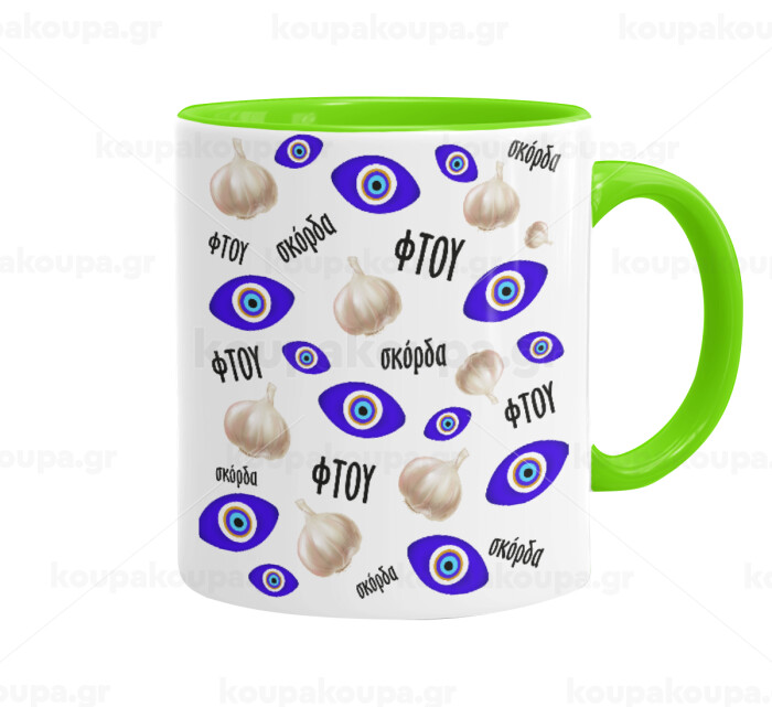 Φτου, φτου, σκόρδα!!!, Mug colored light green, ceramic, 330ml