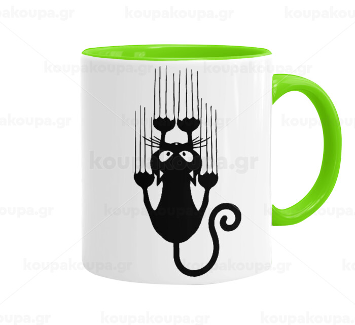 Cat scratching, Mug colored light green, ceramic, 330ml