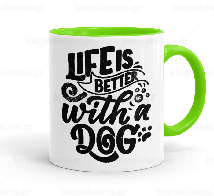 Life is better with a DOG, Mug colored light green, ceramic, 330ml