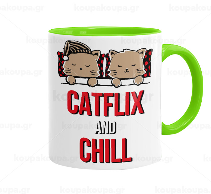Catflix and Chill, Mug colored light green, ceramic, 330ml