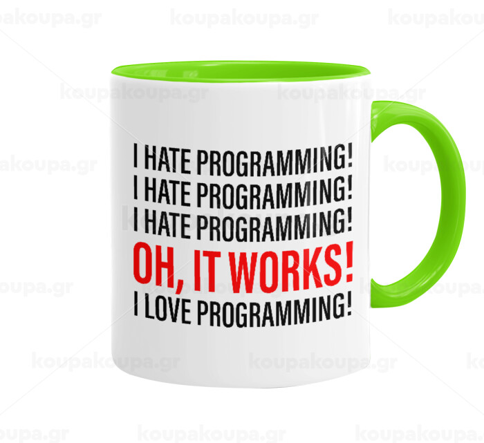 I hate programming!!!, Mug colored light green, ceramic, 330ml