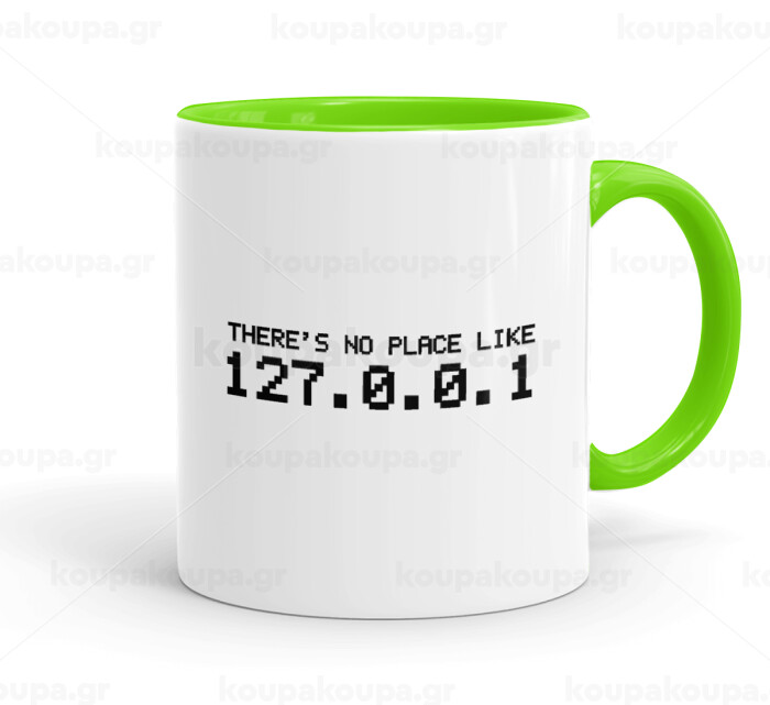 there's no place like 127.0.0.1, Mug colored light green, ceramic, 330ml
