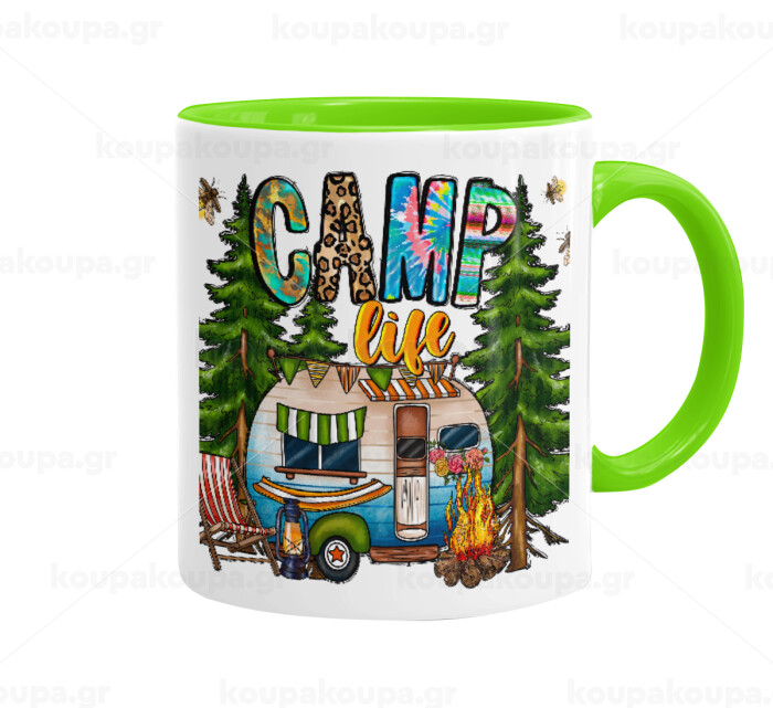 Camp Life, Mug colored light green, ceramic, 330ml