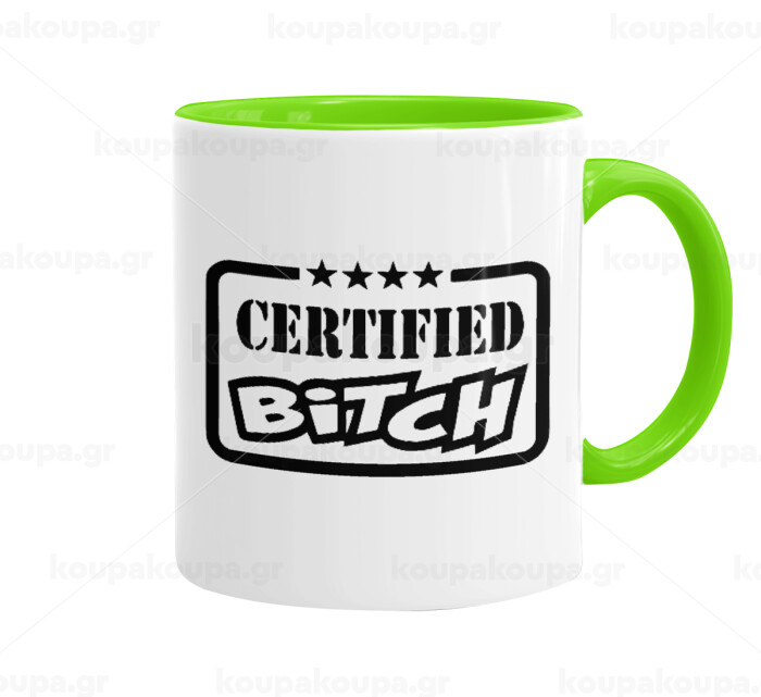 Certified Bitch, Mug colored light green, ceramic, 330ml