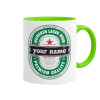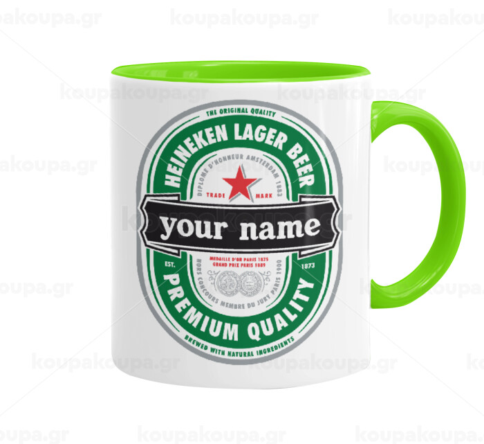 Heineken with name, Mug colored light green, ceramic, 330ml