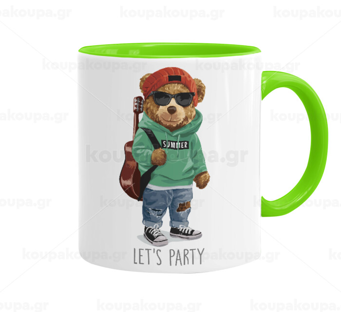 Let's Party Bear, Mug colored light green, ceramic, 330ml