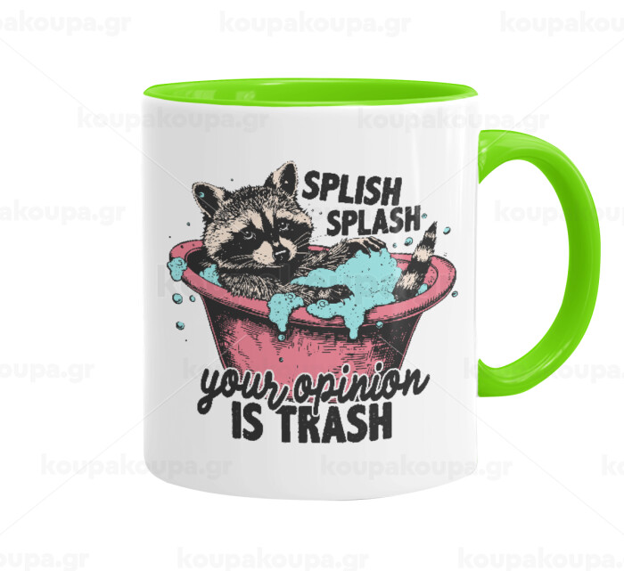 Splish splash your opinion is trash, Mug colored light green, ceramic, 330ml