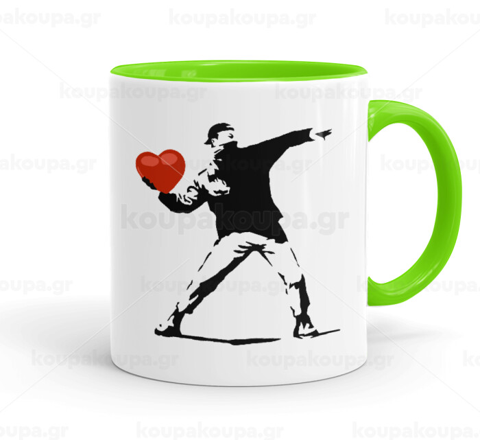 Banksy (The heart thrower), Mug colored light green, ceramic, 330ml