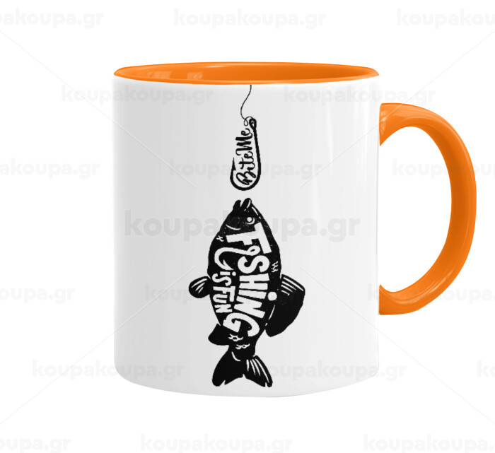Fishing is fun, Mug colored orange, ceramic, 330ml