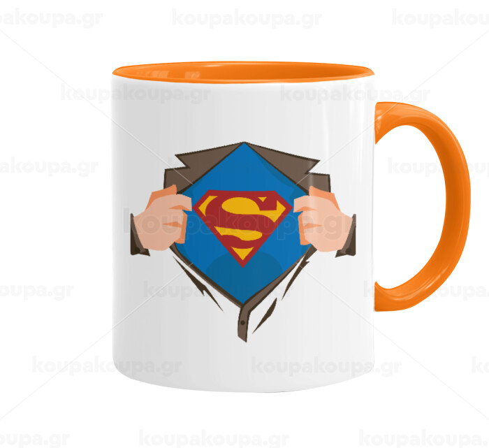 Superman hands, Mug colored orange, ceramic, 330ml