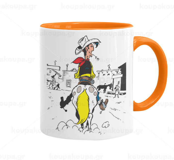 Lucky Luke comic, Mug colored orange, ceramic, 330ml