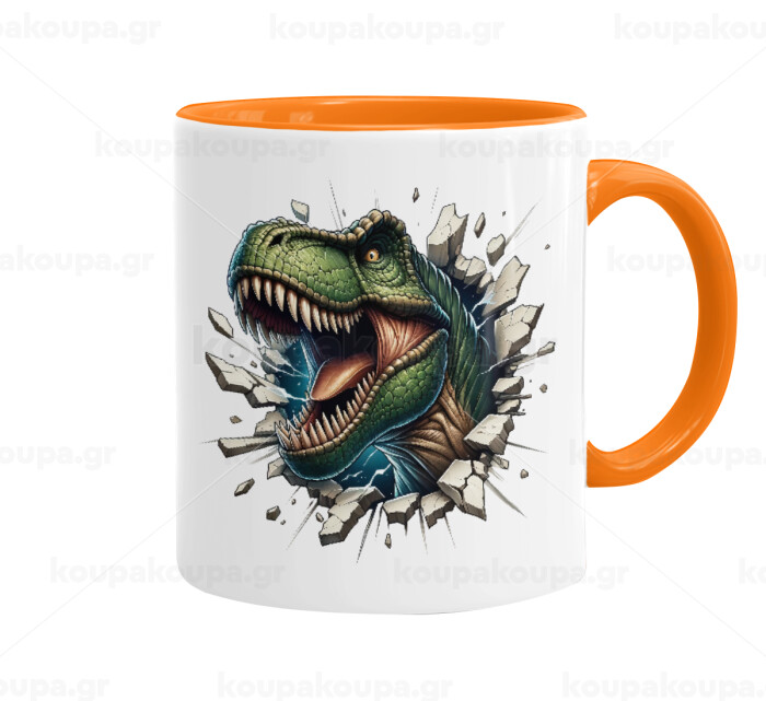 Dinosaur break wall, Mug colored orange, ceramic, 330ml