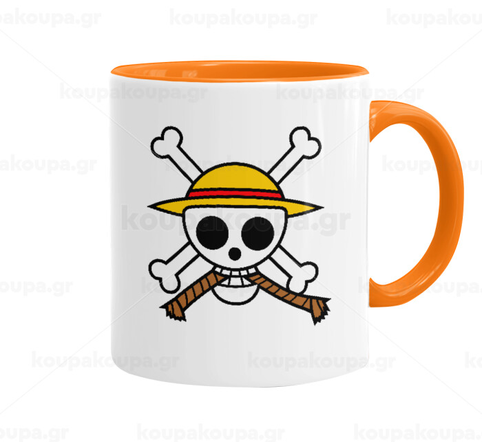 Onepiece skull, Mug colored orange, ceramic, 330ml