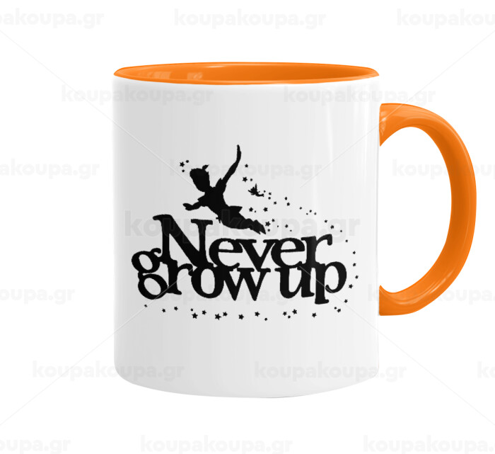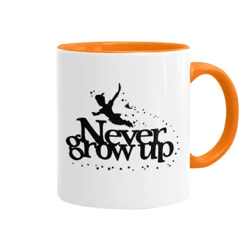 Peter pan, Never Grow UP, Mug colored orange, ceramic, 330ml