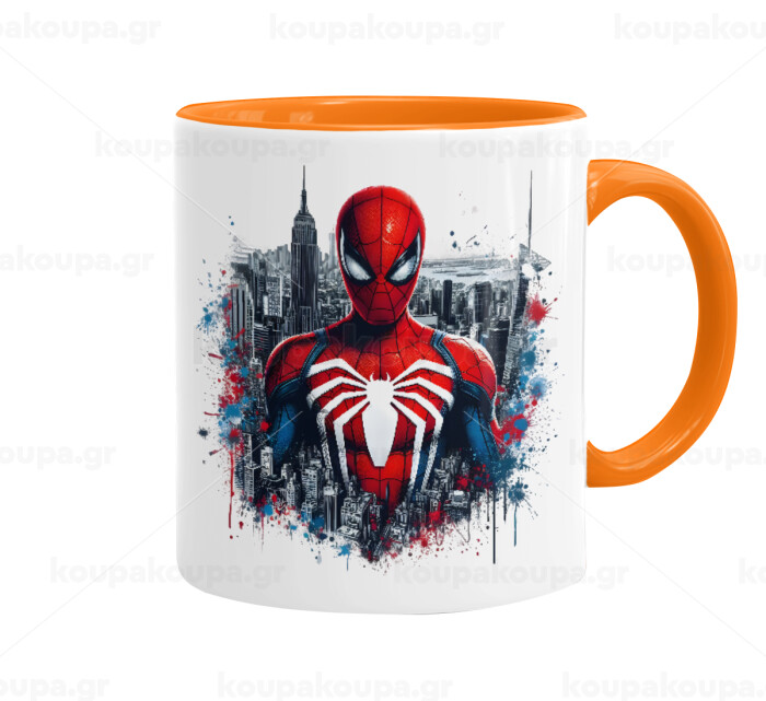 Spiderman City, Mug colored orange, ceramic, 330ml