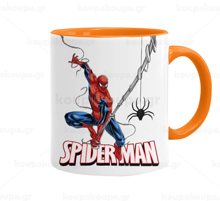 Spiderman fly, Mug colored orange, ceramic, 330ml