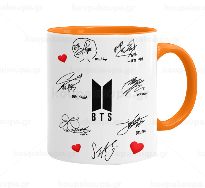 BTS signatures, Mug colored orange, ceramic, 330ml