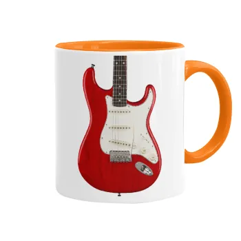 Guitar stratocaster, Mug colored orange, ceramic, 330ml