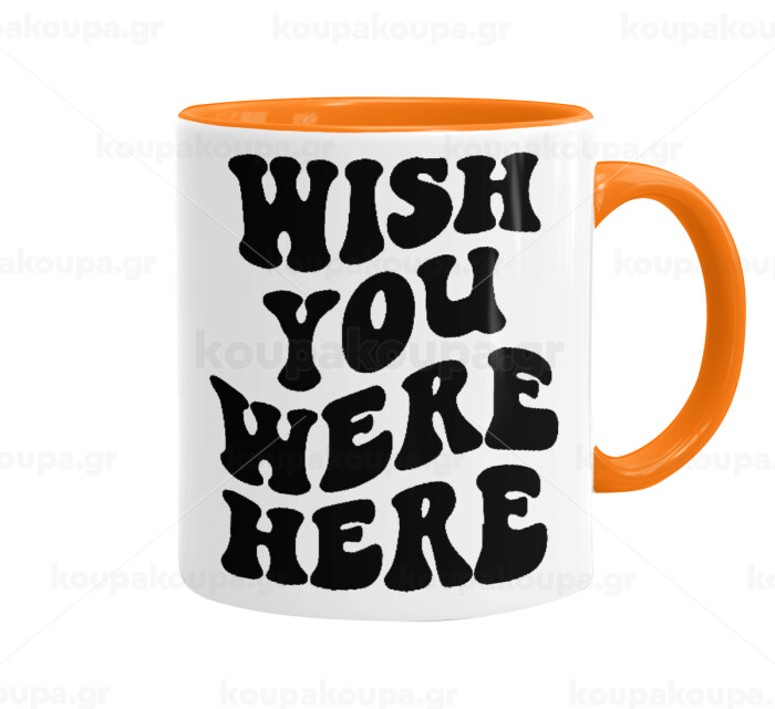Wish you were here, Mug colored orange, ceramic, 330ml