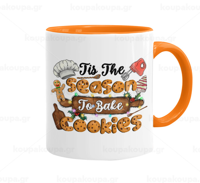 Tis The Season To Bake Cookies, Mug colored orange, ceramic, 330ml