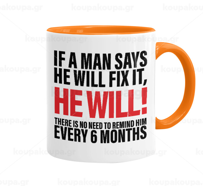 If a man says he will fix it He will There is no need to remind him every 6 months, Mug colored orange, ceramic, 330ml