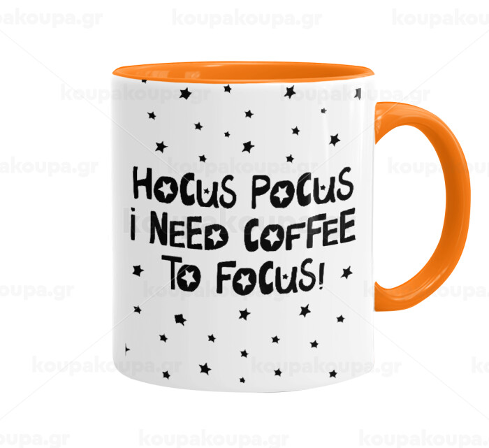 Hocus pocus i need coffee to focus - halloween, Mug colored orange, ceramic, 330ml