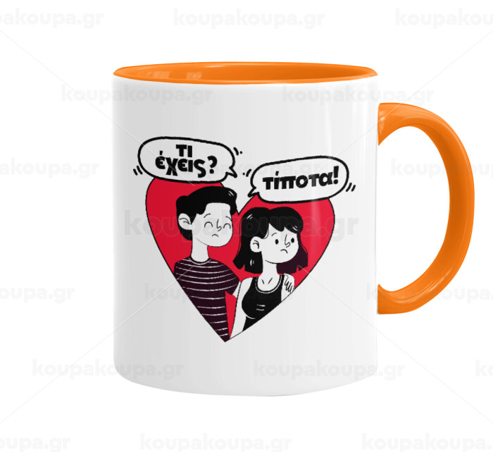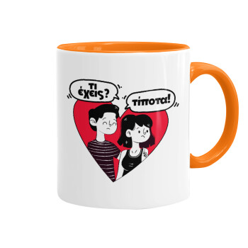 Τι έχεις? Τίποτα!, Mug colored orange, ceramic, 330ml
