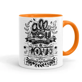 All you need is love, Mug colored orange, ceramic, 330ml