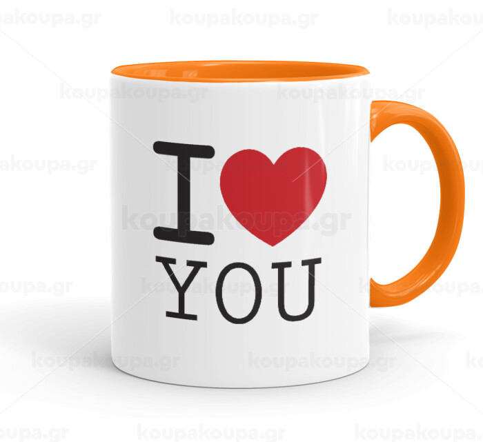 I Love you classic, Mug colored orange, ceramic, 330ml
