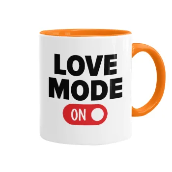 LOVE MODE ON, Mug colored orange, ceramic, 330ml