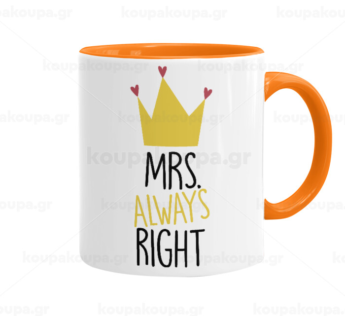 Mrs "Always" right, Mug colored orange, ceramic, 330ml