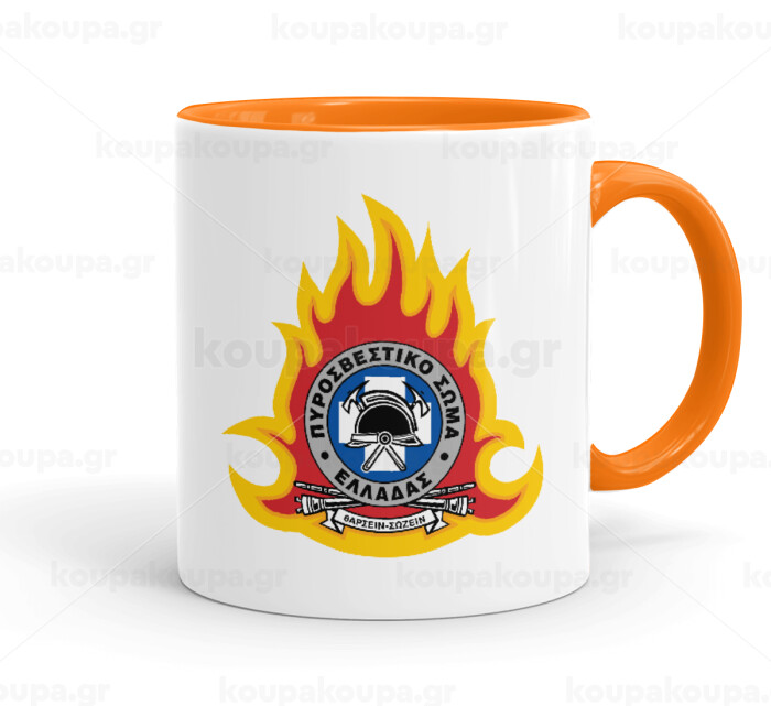 Πυροσβεστικό σώμα Ελλάδος σκούρο, Mug colored orange, ceramic, 330ml