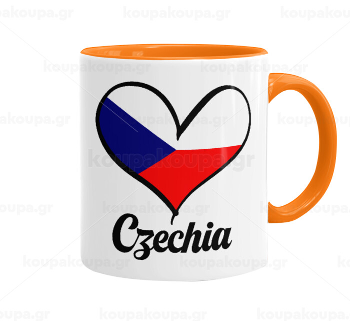 Czechia flag, Mug colored orange, ceramic, 330ml