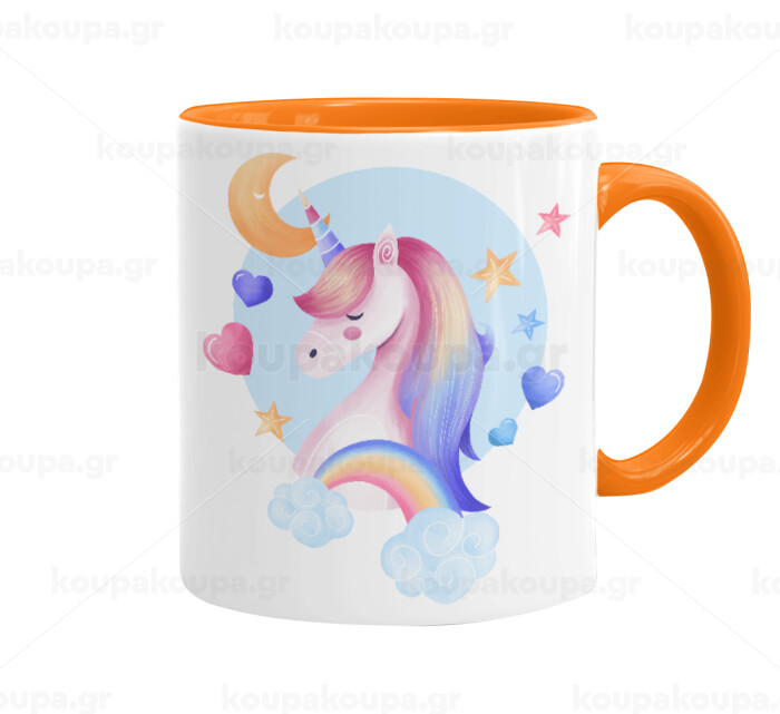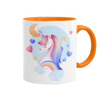 Cute unicorn, Mug colored orange, ceramic, 330ml