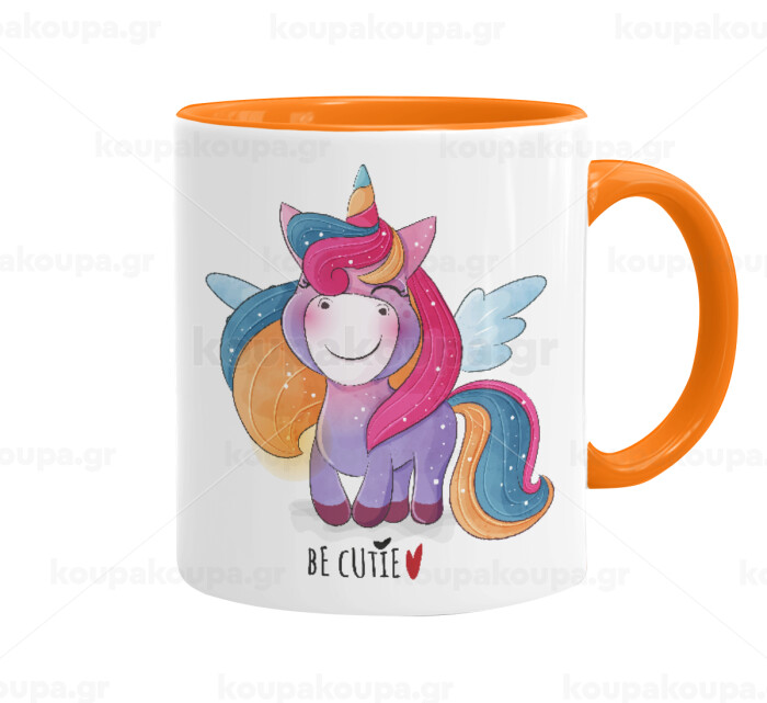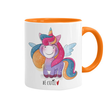 Pink unicorn, Mug colored orange, ceramic, 330ml