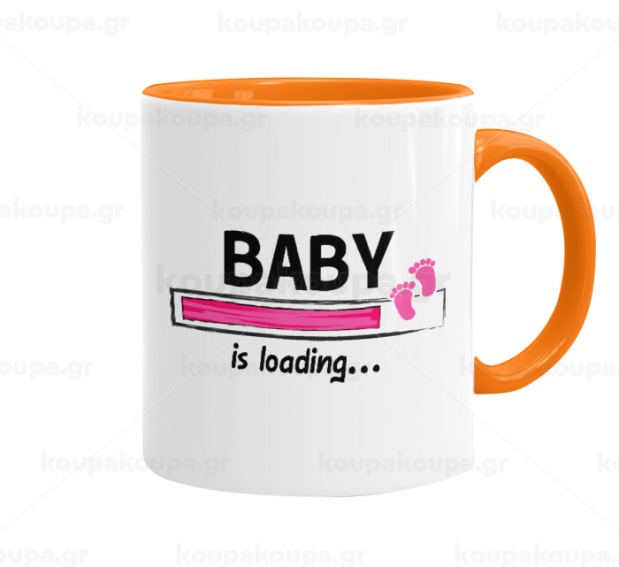 Baby is Loading GIRL, Mug colored orange, ceramic, 330ml